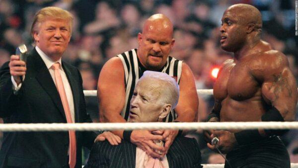 “Joe Biden be balder than Vince McMahon was after I shaved him in the greatest WrestleMania showdown in history.”
